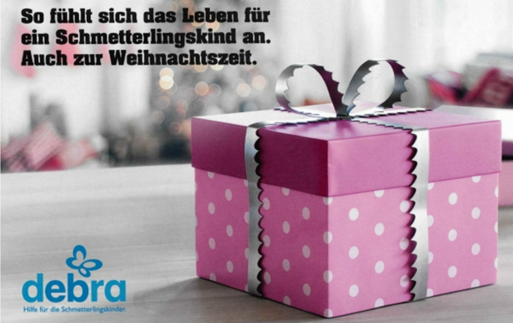 Mit großer Verbundenheit begleiten wir den Verein DEBRA bereits seit vielen Jahren und damit deren Herzensangelegenheit: die Schmetterlingskinder und deren Familien. Spenden ermöglichen es, die Forschung zur derzeit noch unheilbaren Hauterkrankung Epidermolysis bullosa zu fördern, Familien im Alltag zu unterstützen, Symptome zu lindern und wichtige psychologische Hilfe zu leisten.